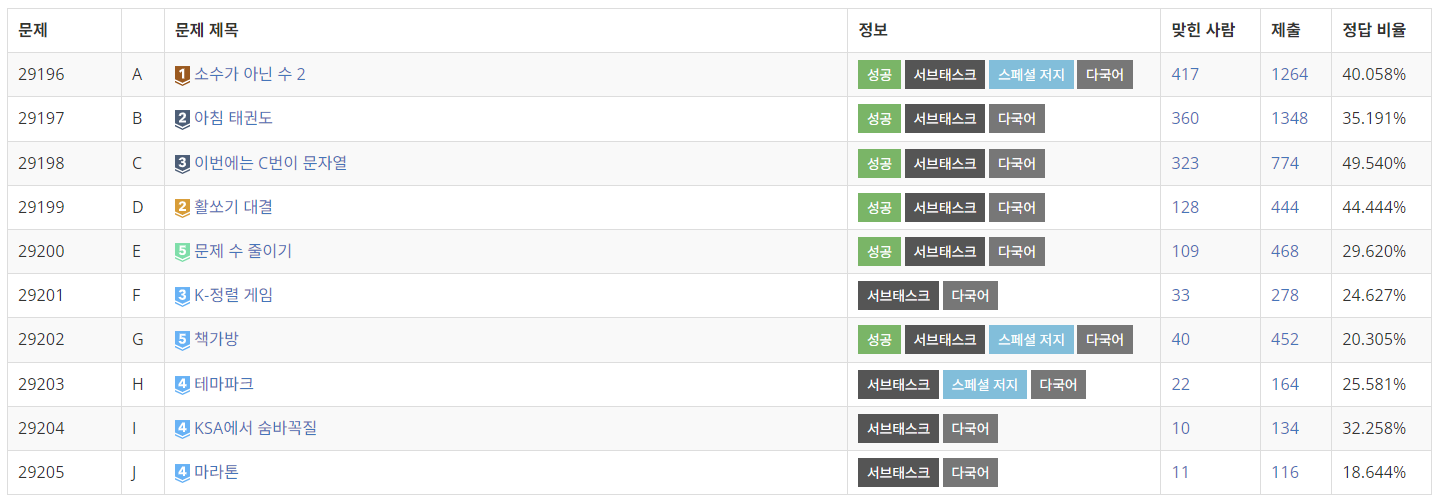 대회 치면 맛있는거 준다길래 한 번 참여해보았다. 사실 아레나로도 칠 수 있지만 레이팅 걸려있는 것 넘나 무서운 것... E번까지 슥슥 밀고 슼보 봤는데 다들 G번을 풀었다. 자료구조 문제인데 상위 K개라서 dnc opt 어쩌구저쩌구 뇌절박다가 겨우 빠져나와서 셋질함... 근데 그와중에 구현 뇌절해서 대회 맛있게 말아먹은 듯ㅋㅋ 그래도 풀었으니까 후회는 없다~