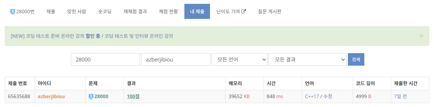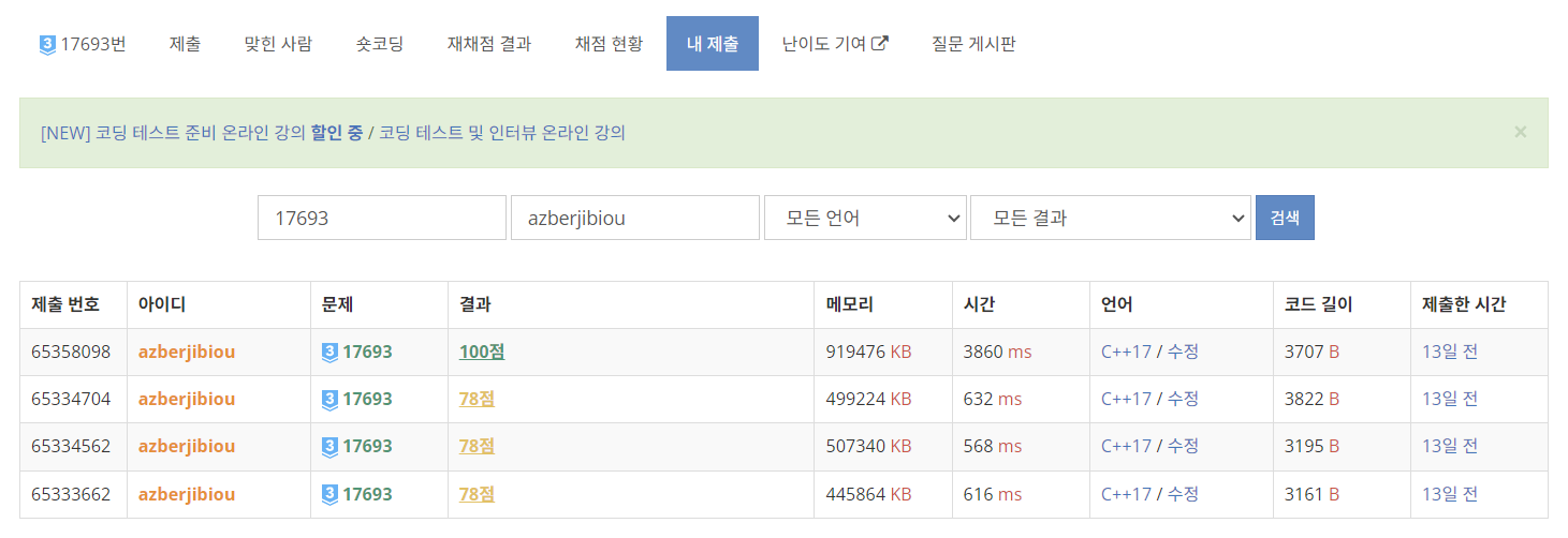 저 문제 넘 어려움... 요즘 조이슥 밀겠다고 가장 최근 셋 밀고 있는데 다이아 이하 6문제에 루비 4문제ㄷㄷ 저거 풀려고 한 이틀인가 고민한 듯. 사실 동치조건 찾고서도 증명이 안 되어서 하루쯤 더 씀 어려운 듯ㅋㅋ