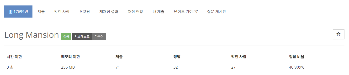 Snake escaping은 정말 색다른 문제다. bit dp 문제임에도 시간복잡도가 예상이 가지 않는다. 그래도 council 풀면서 bit dp에 대해서 고민을 조금 해놓았어서 풀 수 있었던 것 같다.